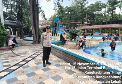 /Tiennews.com,-LEBAK-Memberikan rasa aman kepada pengunjung di obyek wisata kolam renang Bim, anggota Polsek Rangkaabitung,AIPTU Rahmat Subiakto,AIPDA Turas Catur dan BRIPKA