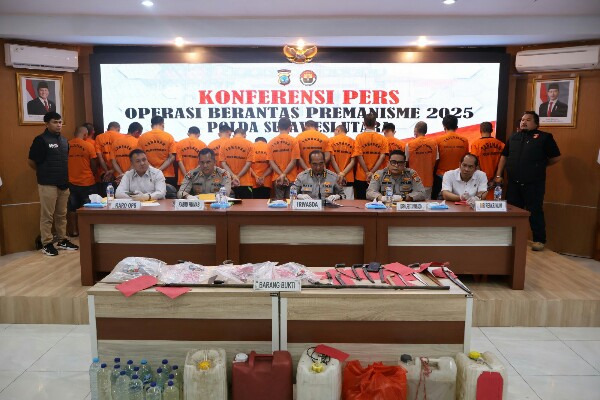 “Hasil Operasi Berantas Premanisme sejak tanggal 1 Mei sampai 18 Mei 2025 sebanyak 189 kasus, terdiri dari sajam 43 kasus, minuman beralkohol 85 kasus, pungutan liar 12 kasus dan gangguan ketertiban umum sebanyak 49 kasus,” jelas Kombes Pol Bayu.